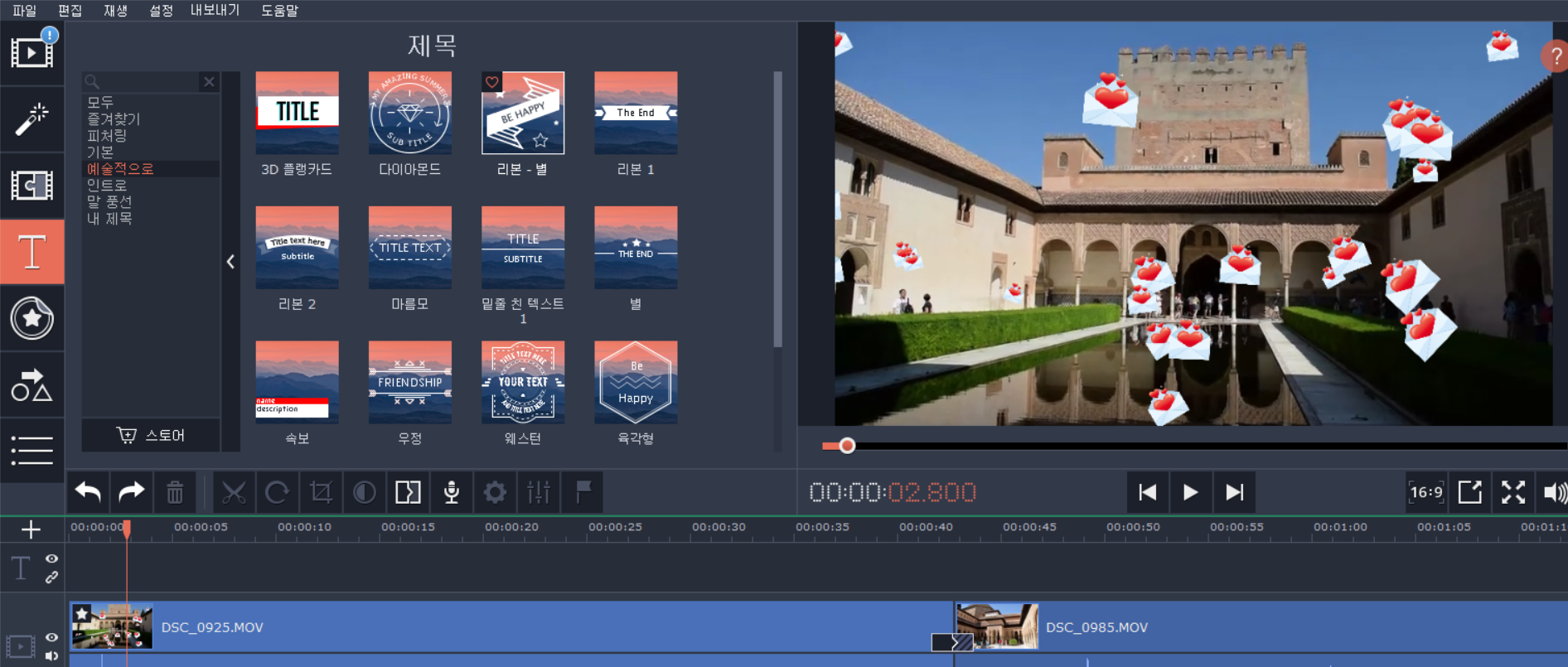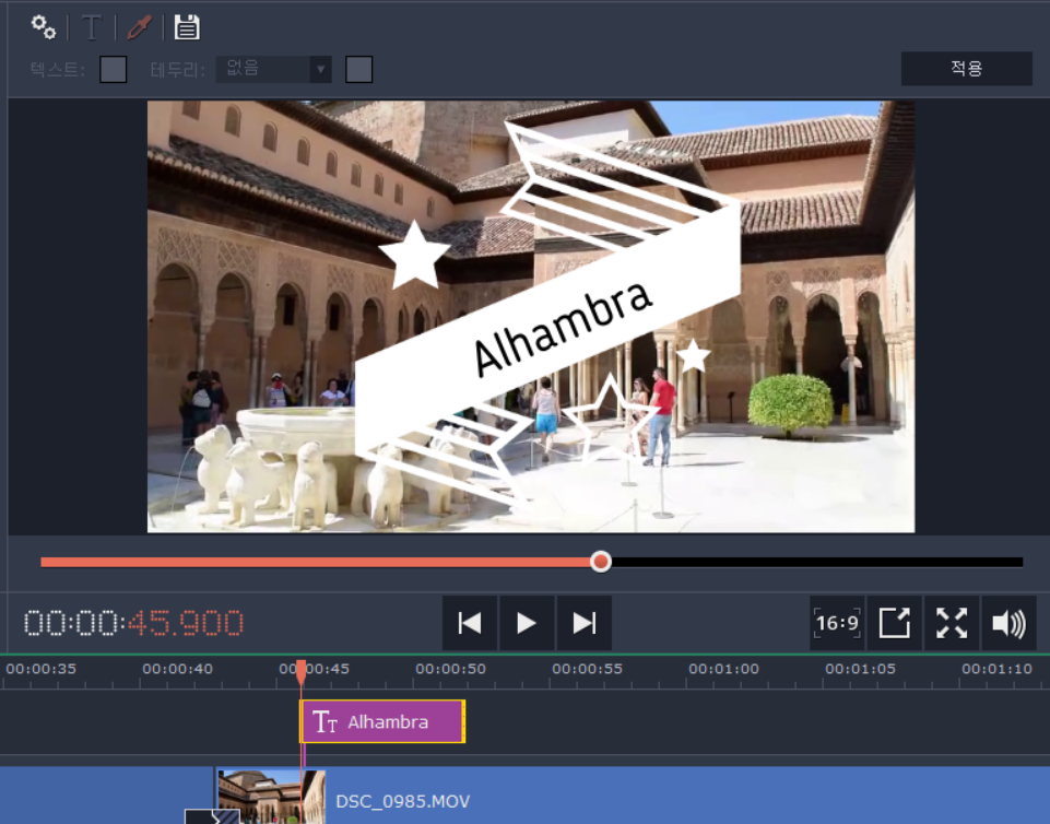 알함브라궁전에서 찍은 영상이라 Alhambra로 넣어봤어요. 깔끔하게 잘 나옵니다.