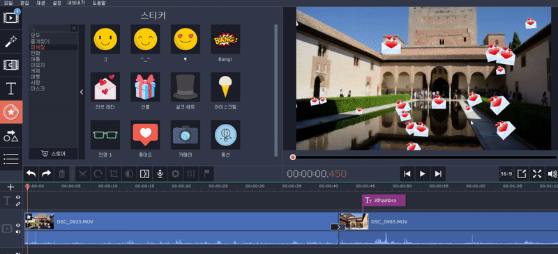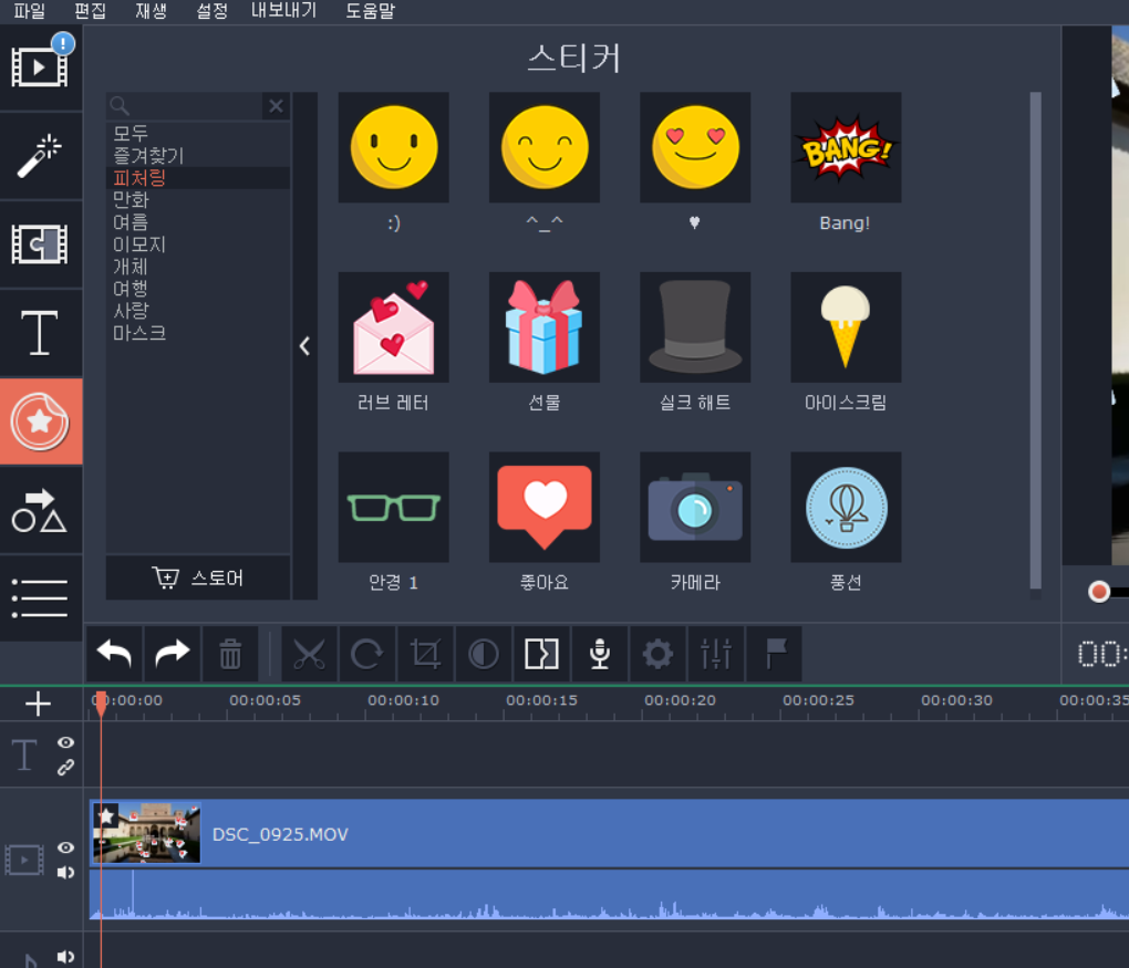 스티커 효과도 있는데 이모티콘을 영상에 넣는다고 보면 됩니다.
